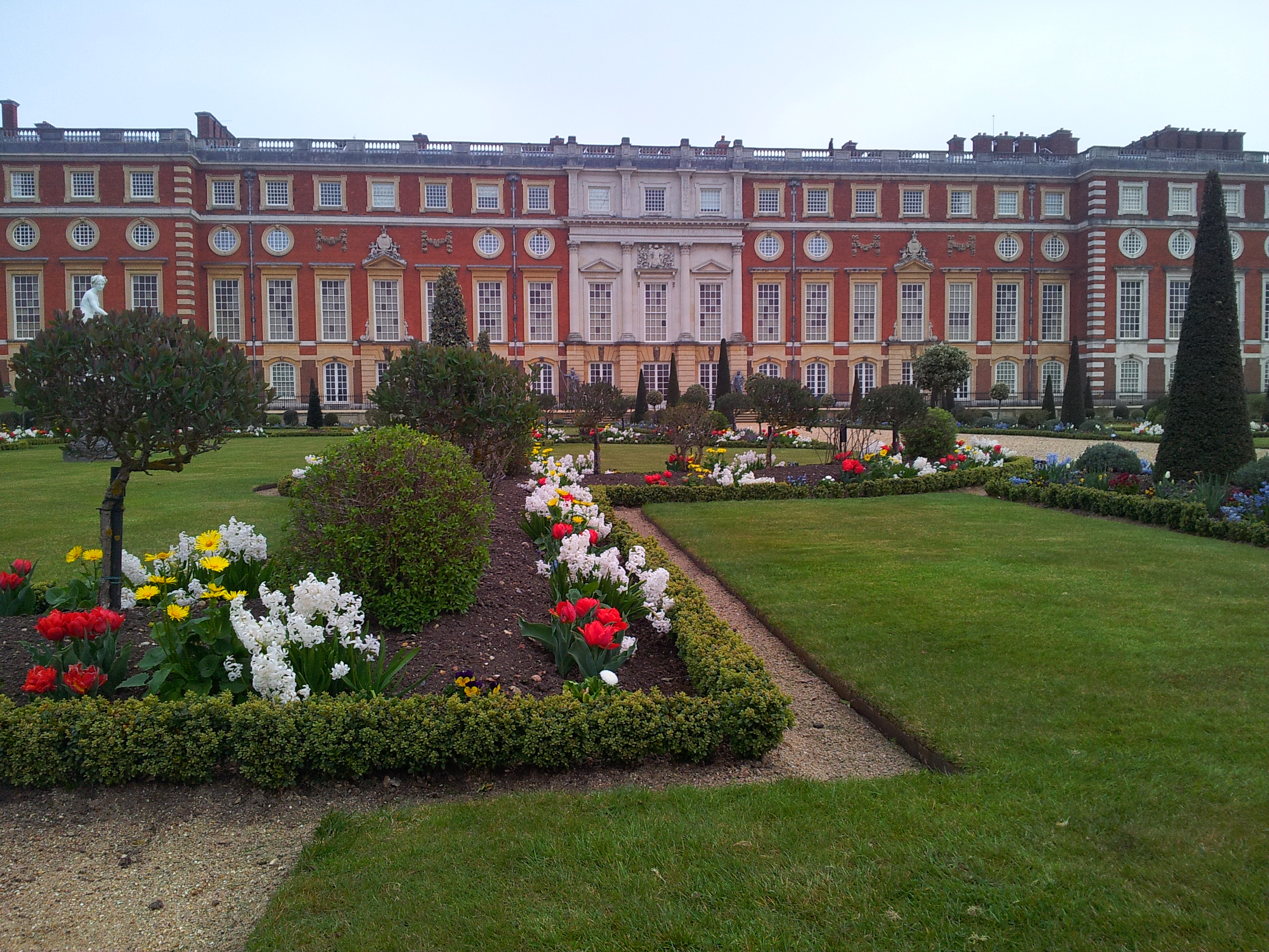 Hampton Court saw my first dull weather day working there just before the bank holiday weekend. The planting looked great and it was just a matter of adding those finishing touches – mowing, edging, raking of sand, watering the urns of Auriculas. Judging from the weather we had over the long weekend, this last job wasn’t vital, though the feed seems to have galvanised them into a mass of flowering judging from what I saw of them yesterday.